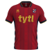 Sublimated club crest and sponsor logos.