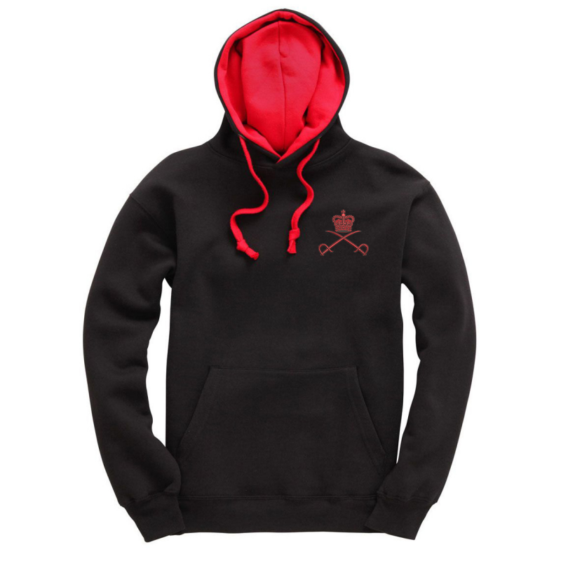 A premium, heavyweight hoodie with contrast colour hood featuring embroidered badge and a kangaroo pouch pocket. 65% Cotton/35% Polyester.